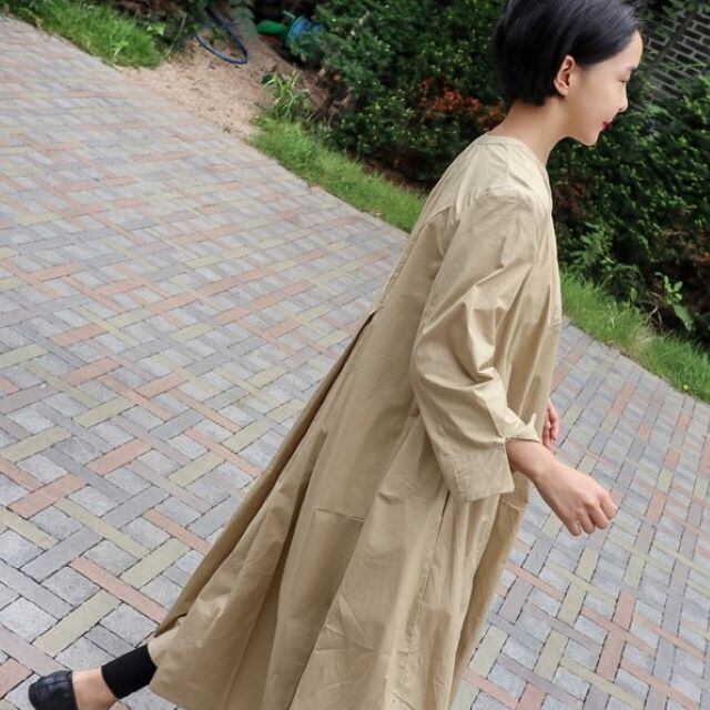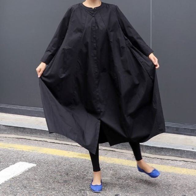 生地をたっぷり使ったオーバーサイズのノーカラーシャツワンピース