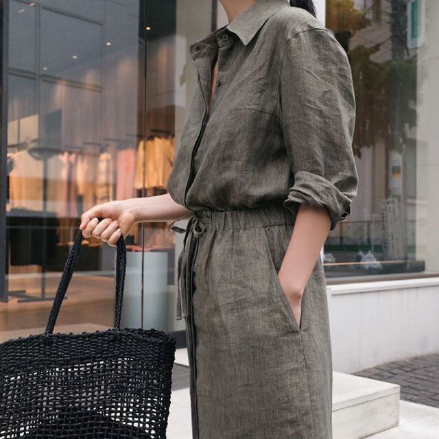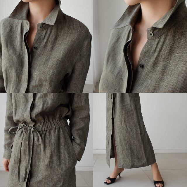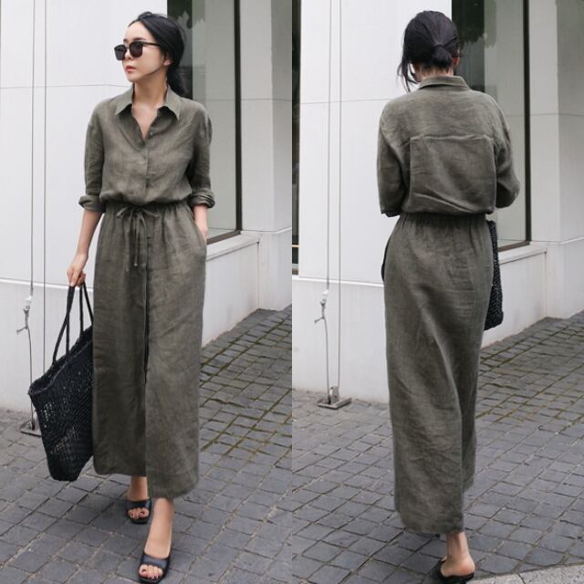 送料無料 ロング シャツワンピース レディース 大きいサイズ 羽織 アウター 前開き マキシ丈ワンピース 無地 カーキ Vネック 長袖 コットンリネン ウエストリボン ポケット付き Iライン ハイウエスト お出かけ 通勤 オフィス OL カジュアル 買い物 お呼ばれ デート 女子会 アウトドア 海 大人 上品 おしゃれ きれいめ かわいい セクシー 個性的 スタイリッシュ ゆったり 体型カバー ママコーデ 春夏秋 韓国 ファッション 10代 20代 30代 40代 50代 / O562